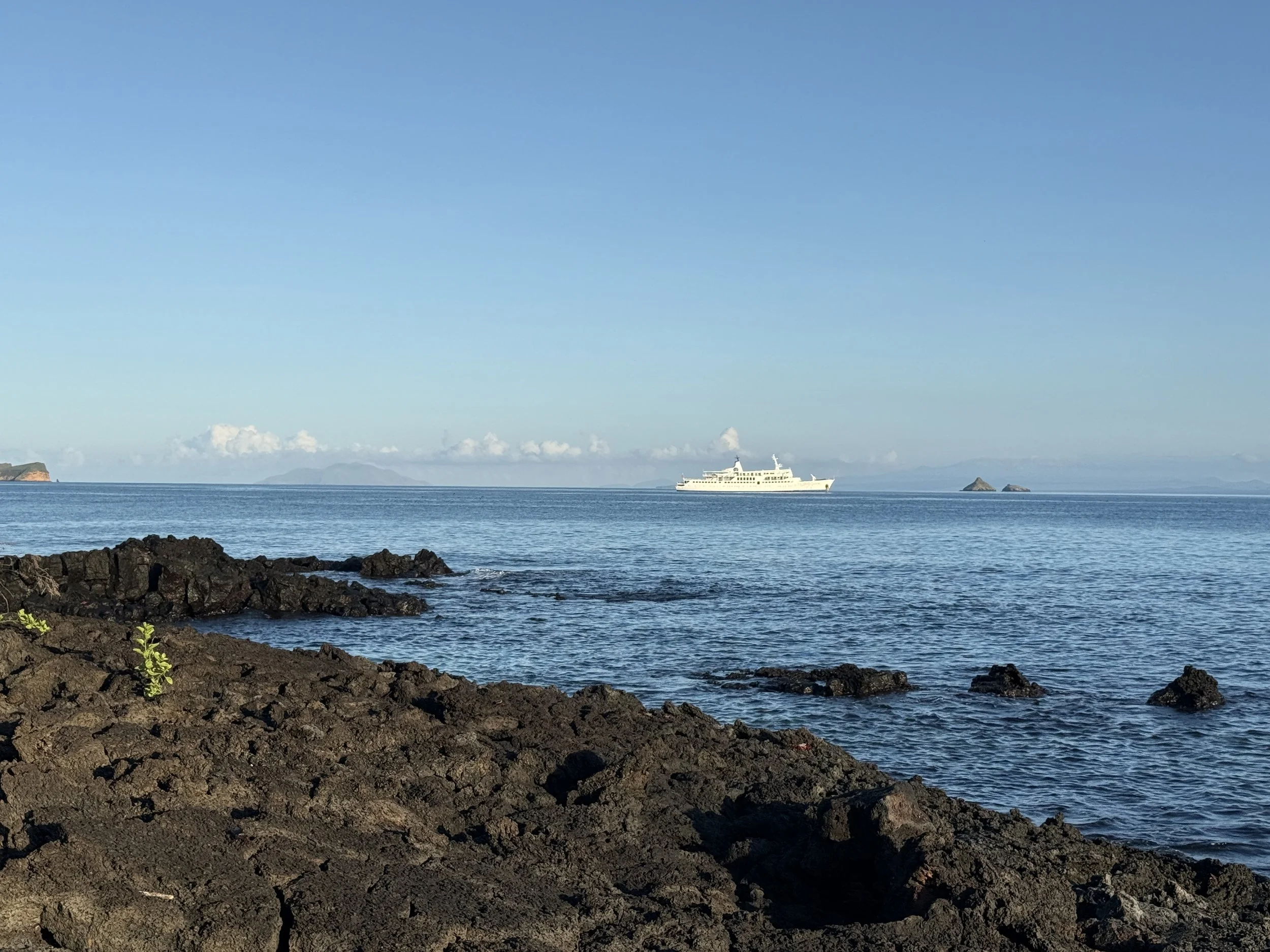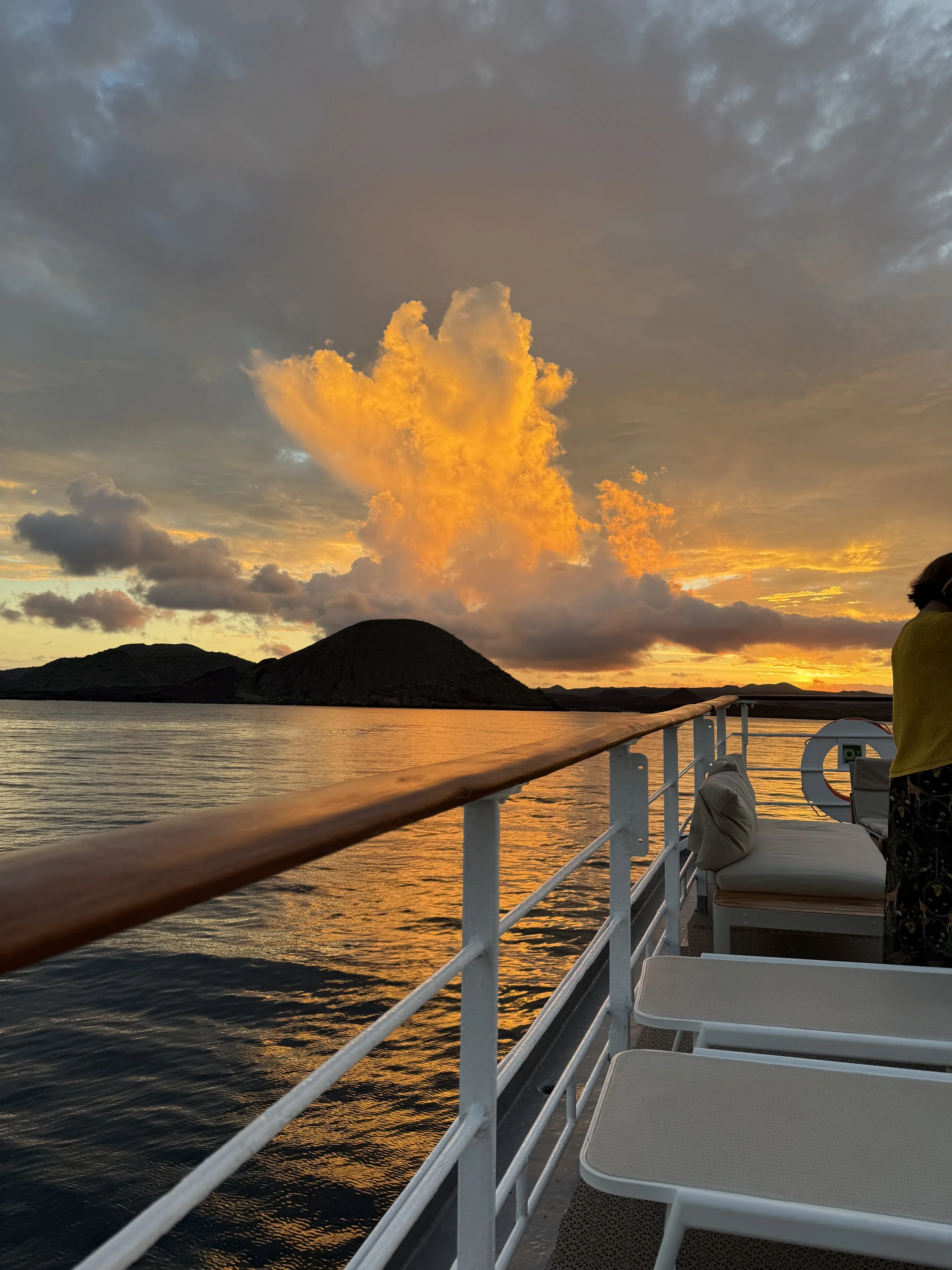 In the Galápagos, every day we experienced the joy and wonder of seeing new species up close in their natural habitat. There was also joy and fun in simply being outside every day, hiking (in 80+ degrees and 1000% humidity—so much fun!) and snorkeling (without wetsuits! the water was warm!). This tour was fast-paced; often we returned to the ship from an island landing via dinghy, only to change clothes in order to set out for the next activity. If I’m honest, it was really good for me to get out of my head for almost two weeks, and out of my studio, which is kind of like a room-sized version of my head that I spend too many (?) hours in every day at home.